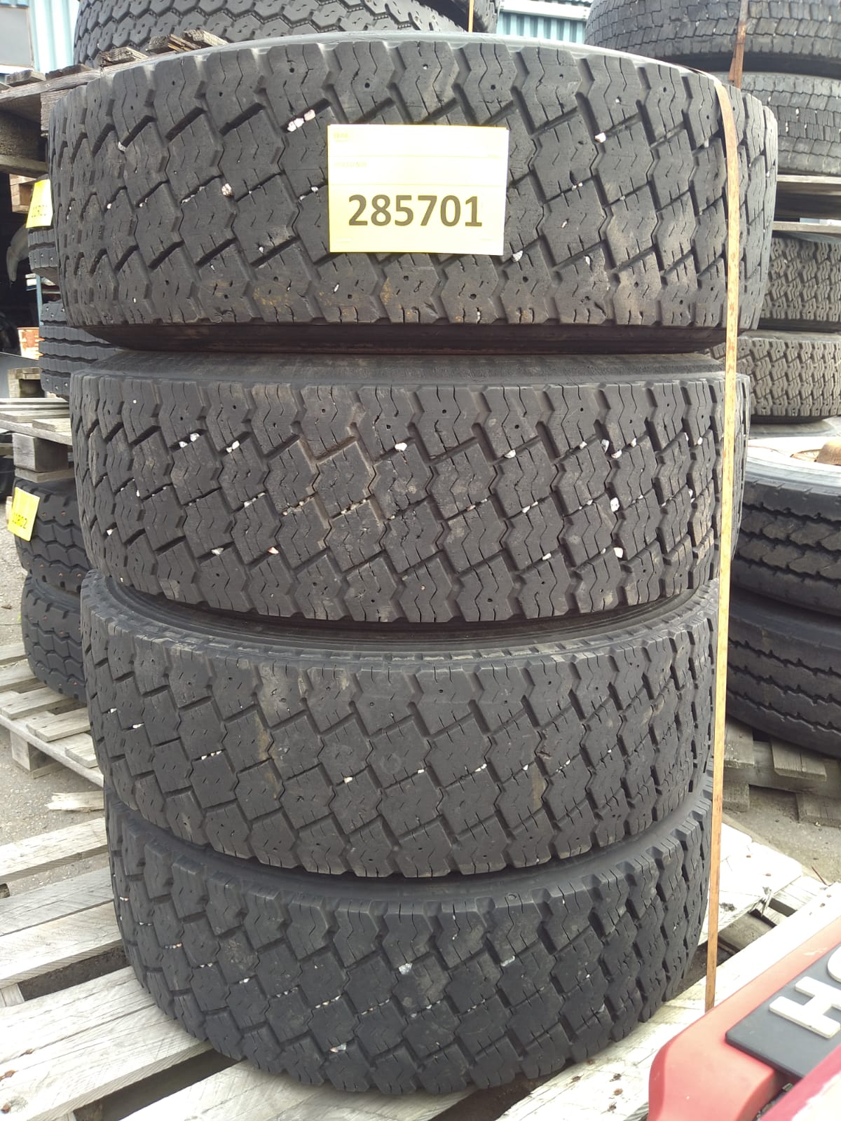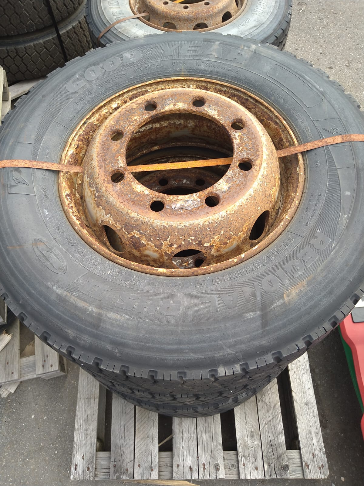 Käytetyt pinnaamattomat renkaat vanteineen 285/70 R19,5 4kpl.