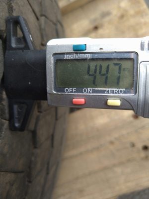 Pintaa noin 4mm. Toinen rengas ulkoreunasta kuluneempi.